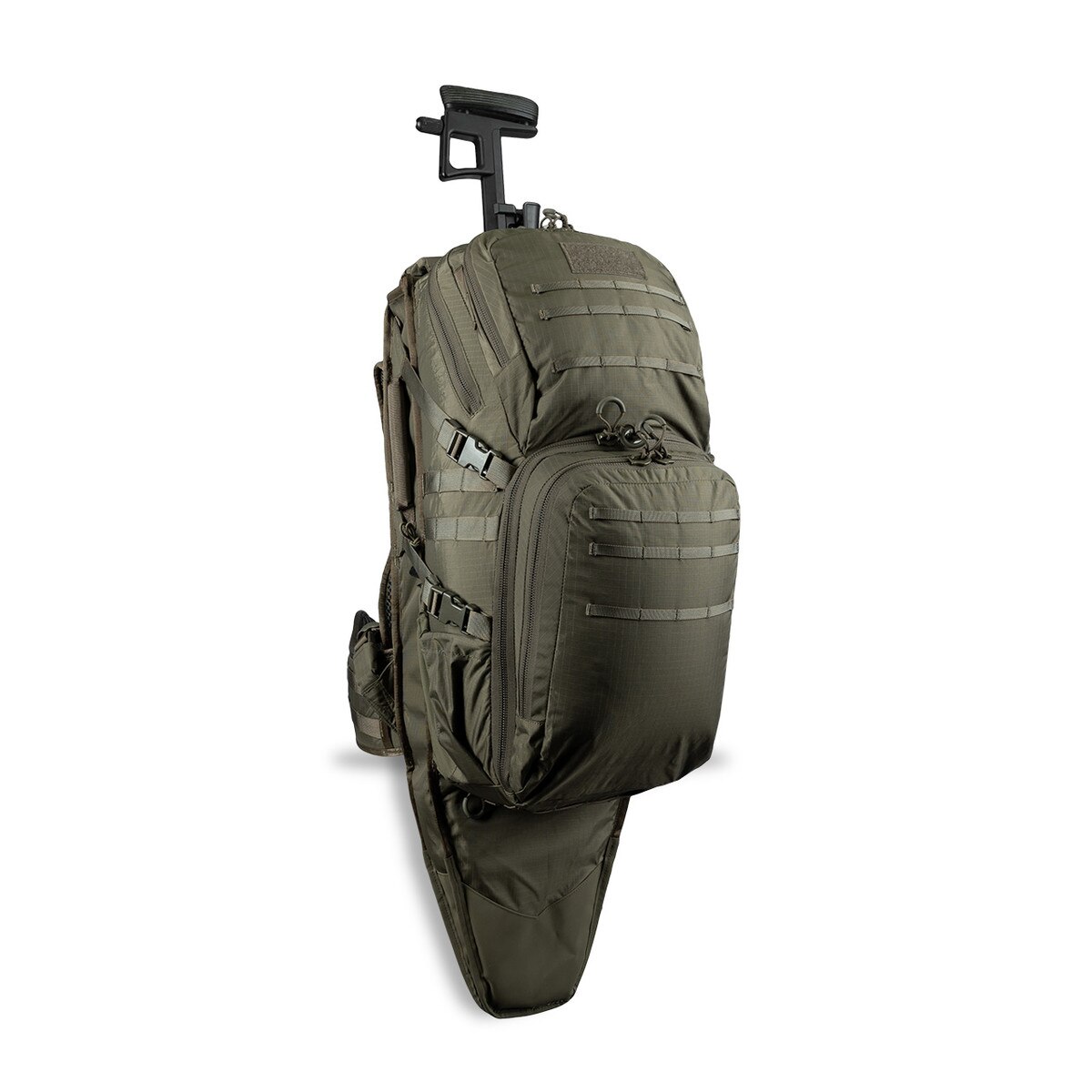 Лека тактическа раница с кобур за оръжие, сгъваема рафтова система и хидратираща обвивка.