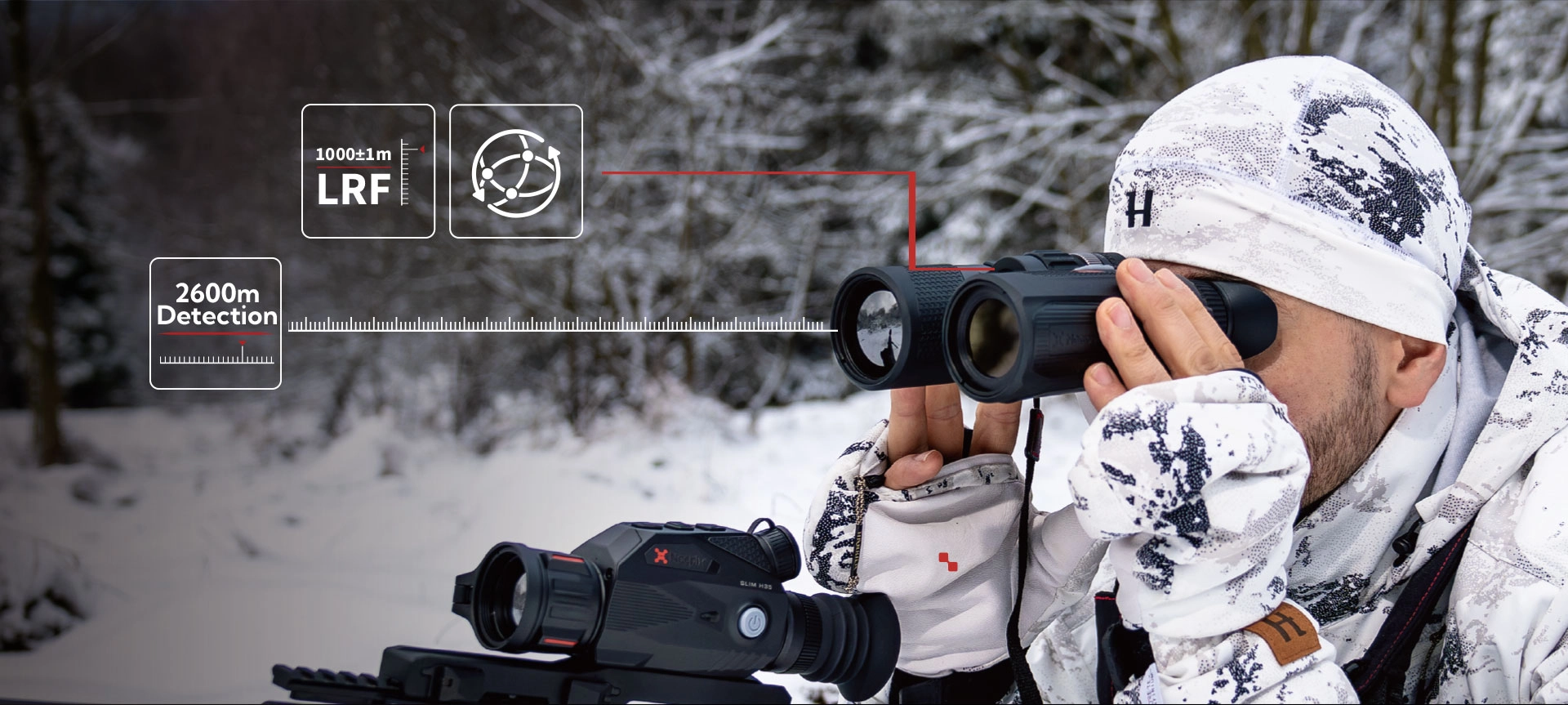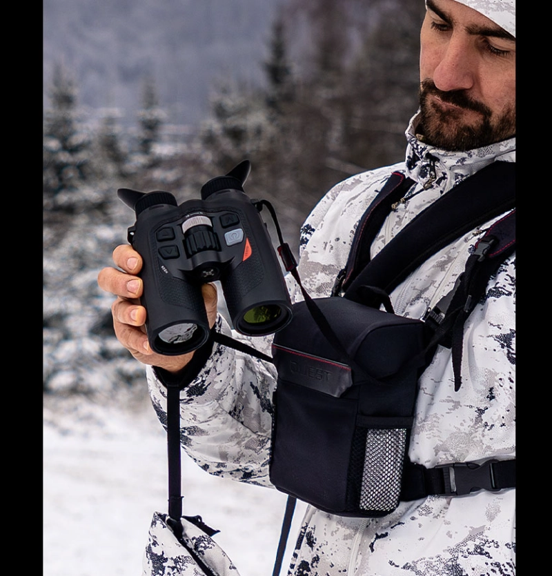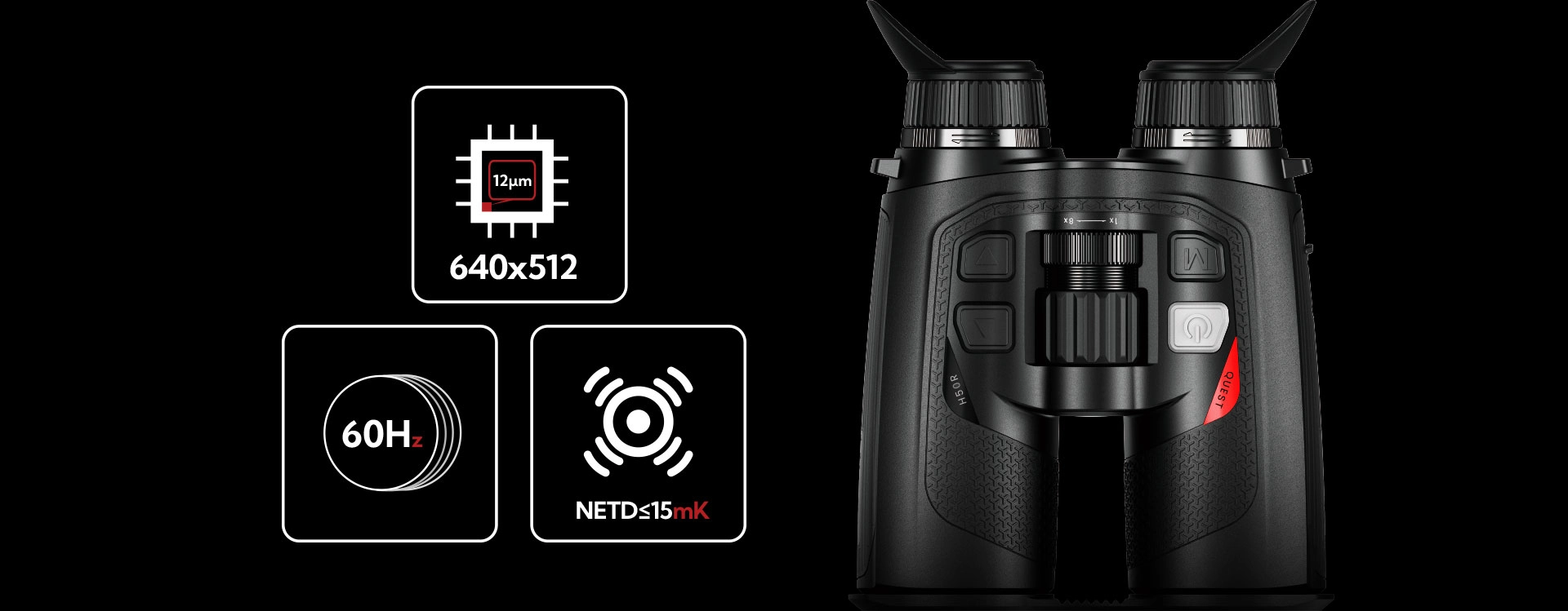 QUEST е лек и преносим, предлагащ диапазон на откриване до 2600m и вграден скрит LRF с обхват от 1000m за изключителна точност и видимост. Неговият традиционен бинокулярен дизайн има пълно гумено покритие и IP67 рейтинг за издръжливост и комфорт при тежки условия. Оборудван с високопроизводителен 640×512 сензор (NETD ≤15mK, 60Hz), QUEST осигурява изключителна яснота на изображението, отлична термична чувствителност и безпроблемна работа в предизвикателни среди.