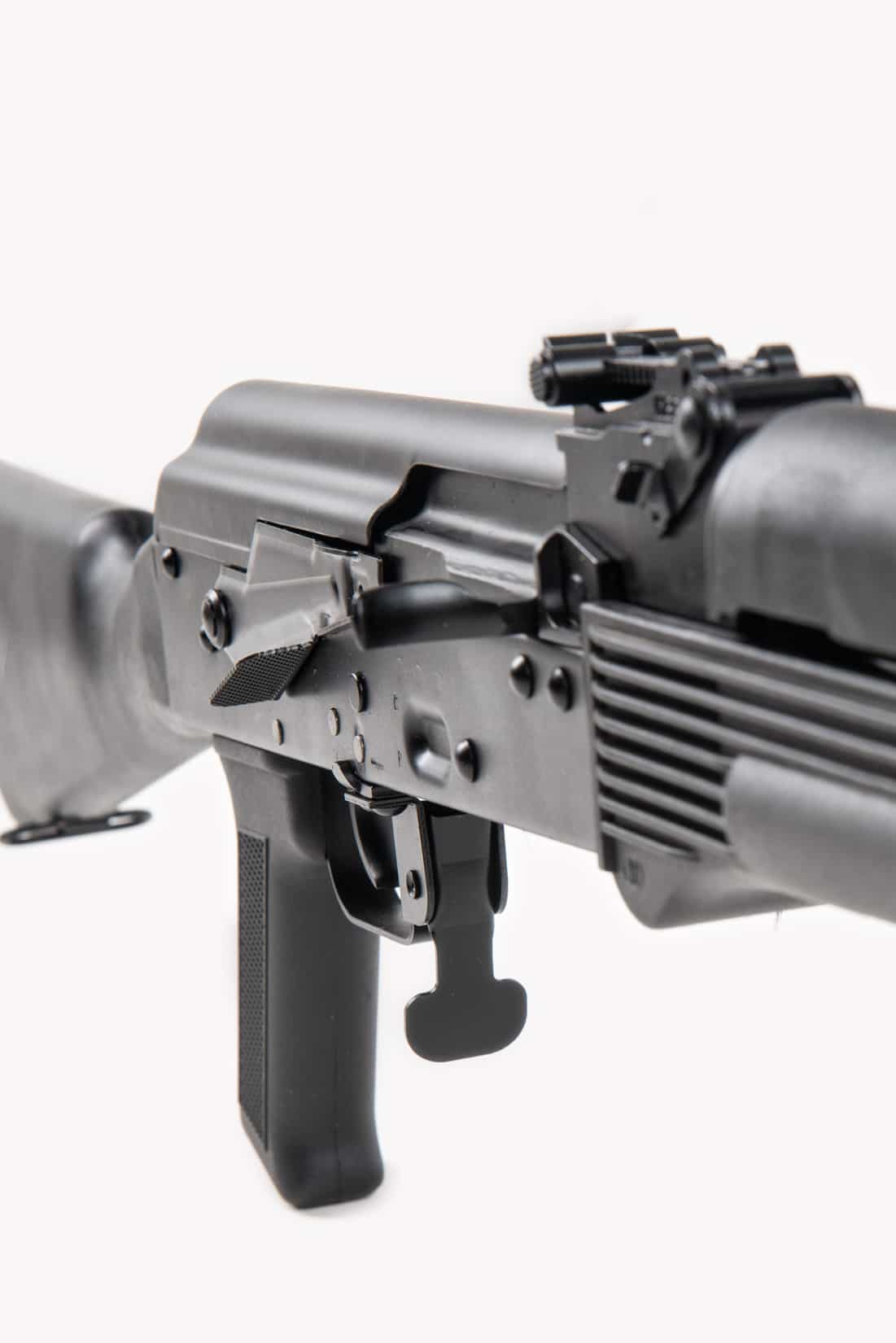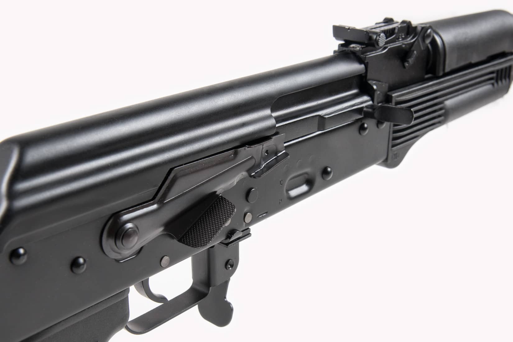 Jack 7,62×39 mm Polymer har en fræset sideskinne til montering af optik, nittet direkte på låsekammeret for øget stabilitet. Dette muliggør hurtig og sikker montering af forskellige optiske sigter.