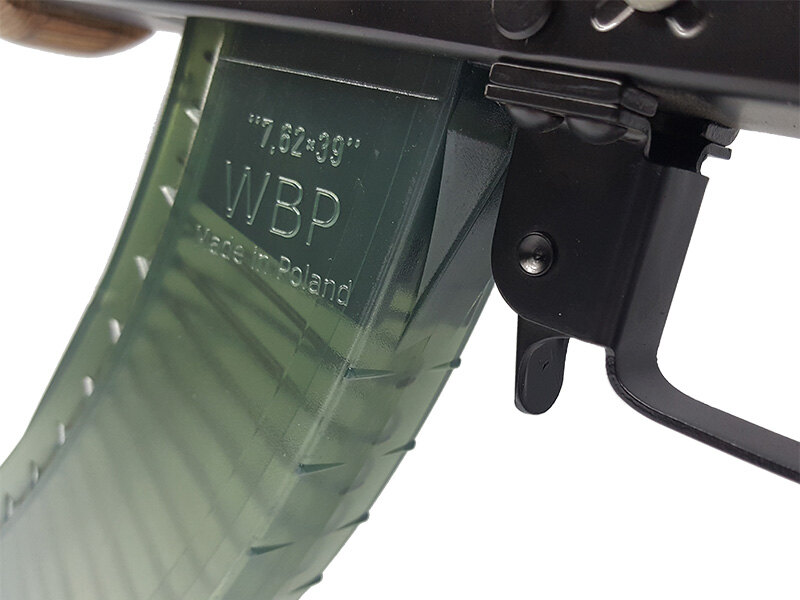 Caricatore da 30 colpi per fucili AK/AKM di WBP®. Prodotto in Polonia, questo caricatore presenta: