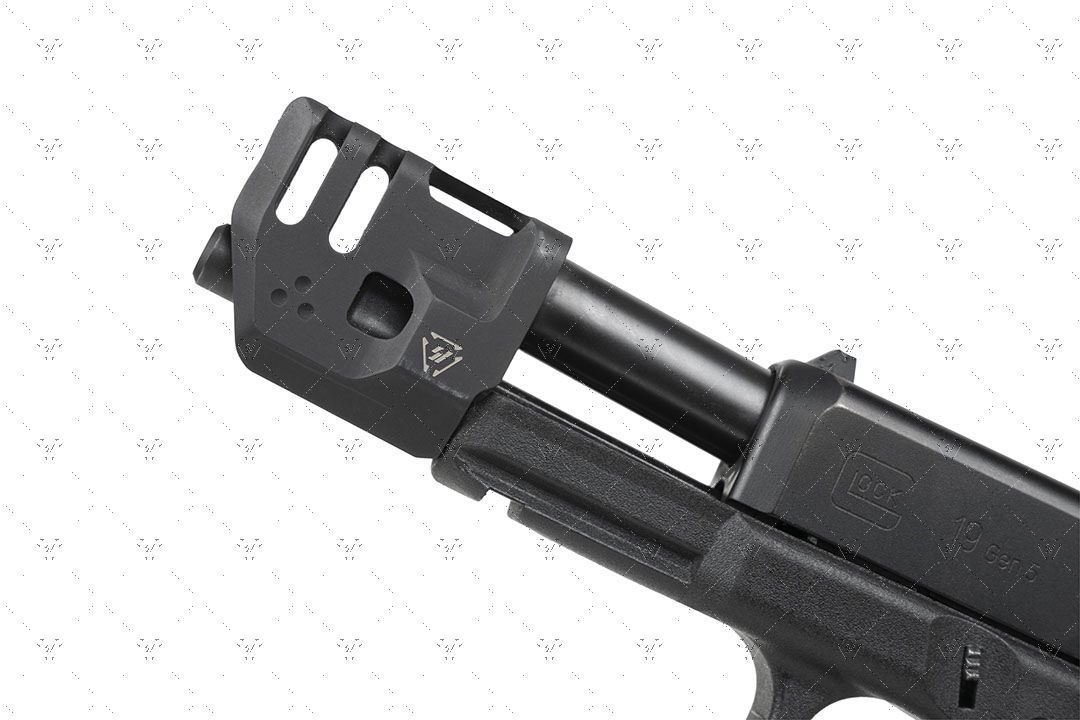 Revolucionārs kompensators Glock 19 Gen4 ieročiem. Samazina atsitienu un stobra pacelšanos.