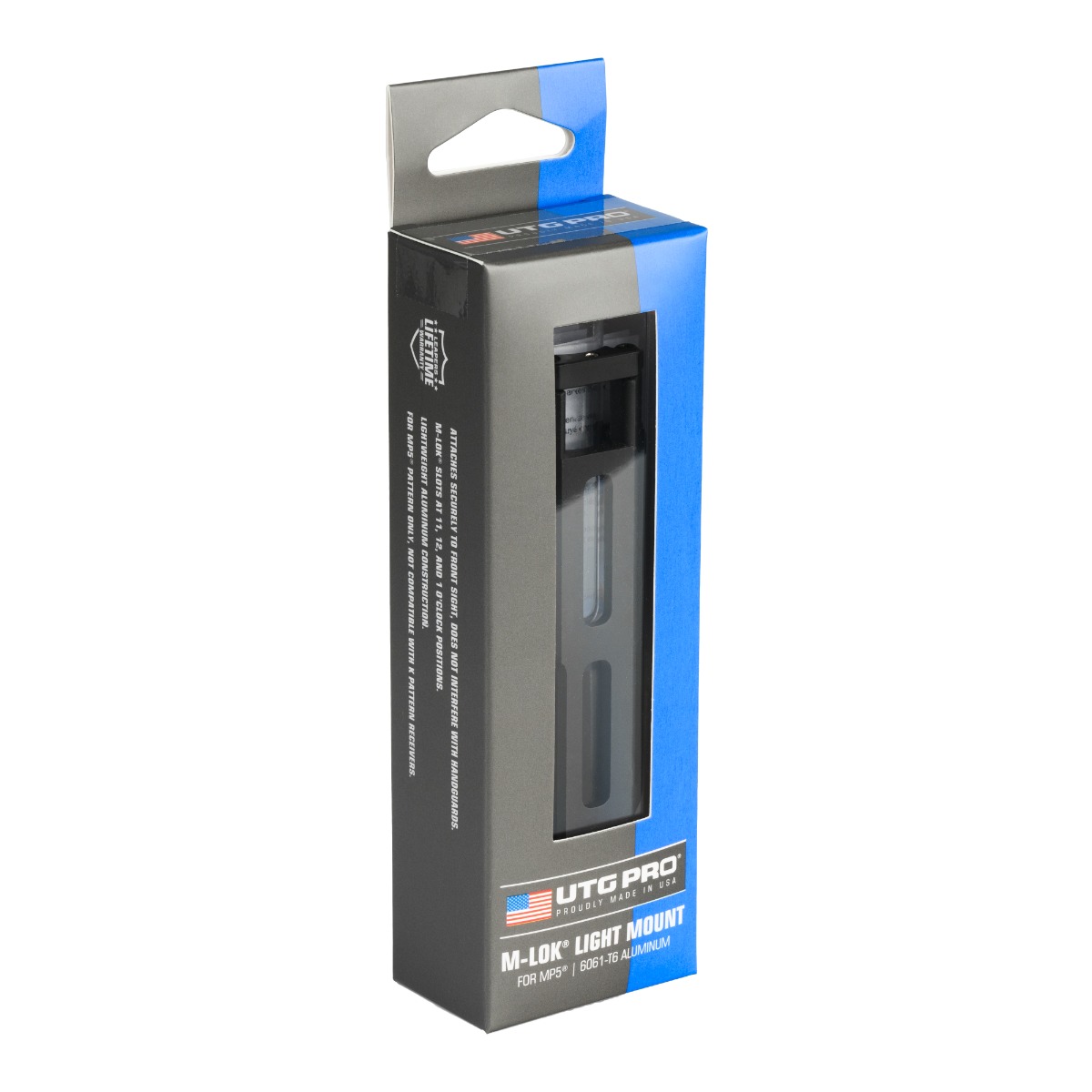 Enhance your MP5® pattern pistol or rifle with the USA-made UTG PRO® M-LOK® Light Mount. This versatile accessory securely attaches to the front sight without interfering with handguards or forearms, providing a stable platform for lights, pressure switches, and other accessories.